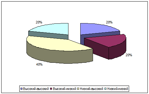 ¾ высокий - низкий (СП выше медианы, СО ниже медианы);