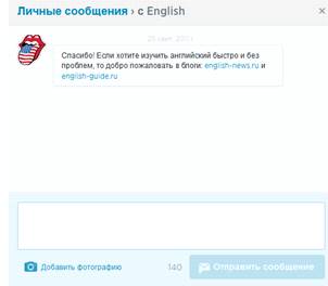 Так же, как и «Вконтакте», есть возможность обмениваться личными сообщениями, но в сообщениях возможен обмен только текстом и фотографиями, но есть возможность постоянно практиковать такой вид РД как чтение и письмо