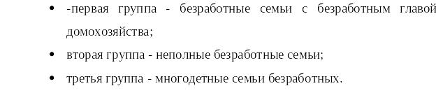 По структуре и уровню доходов, расходов и бедности можно выделить три группы семей безработных, находящихся в ситуациях социальной уязвимости: