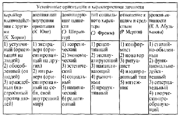 Основные типологии личностей могут быть представлены в виде следующей таблицы: