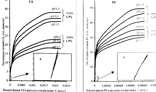 адсорбции тяжелых металлов почвами также позволяет обнаружить на изотермах