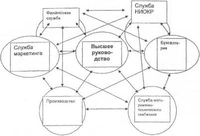 Өндіріс қызметі бұйымның керекті санының шығарылуы үшін жауапты болады. Бухгалтерлік қызмет кірістер мен шығыстарды тексереді, маркетинг қызметіне оның көздеген мақсаттарға қол жеткізуінің қаншалықты табысты келе жатқандығы туралы істің мән-жайын білуге көмектеседі. Барлық осы бөлімшелердің қызметі маркетинг қызметінің жоспарларында да, әрекеттерінде де көрінеді.