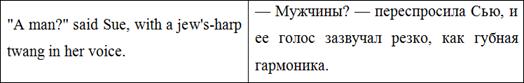 голосе Сью. В тексте оригинала мы видим сравнение с «варганом» - язычковым