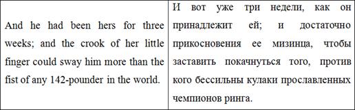 случае это выражение ‘the fist of any 142-pounder in the world’, где автор описывает боксера и указывает вес в