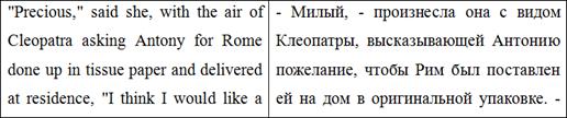 персиков, О. Генри использует аллюзию на Клеопатру и Антония. Сравнение похода