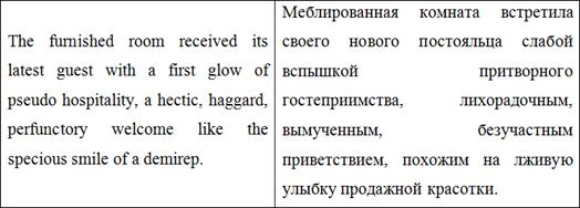 ‘a hectic, haggard, perfunctory welcome’. В переводе М.Ф. Лорие сохранена как структура, так и