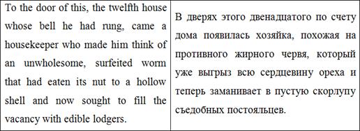 перекормленный червь». М.Ф. Лорие в своем переводе усиливает экспрессивность