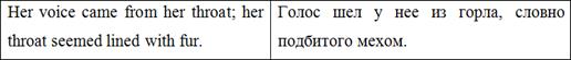 «шел у нее из горла, словно подбитого мехом». Такая метафора помогает читателю