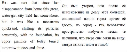 городом и «зыбучим песком»: ‘water-girt city was like a monstrous quicksand’. Это помогает читателю увидеть