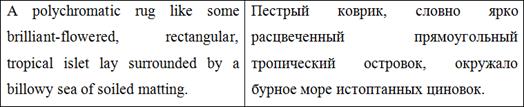 развернутые красочные метафоры, хотя речь идет всего навсего о ковре на