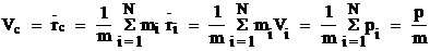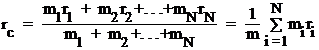 называется центром масс системы материальных точек. Здесь mi - масса i-й частицы, ri - радиус-вектор, задающий положение этой частицы, m - суммарная масса системы. Отметим, что в однородном поле сил тяжести центр масс совпадает с центром тяжести системы.