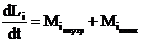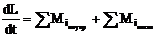 Формула (16) сходна с формулой (1). Из сравнения этих формул заключаем, что подобно тому, как производная по времени от импульса системы равна сумме моментов внешних сил.