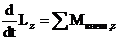 Таким образом, производная по времени от момента импульса относительно оси равна моменту относительно той же оси сил, действующих на частицу.