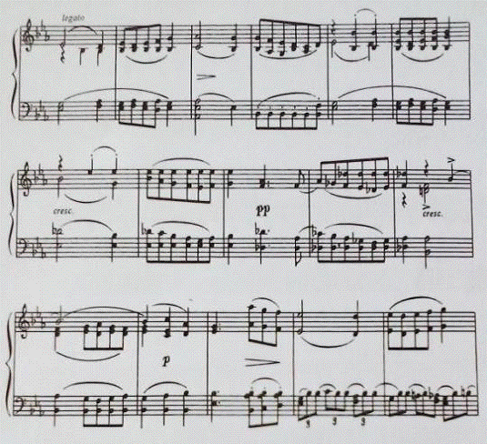 фигурационное восходящее движение в правой руке. Кроме того, второе предложение