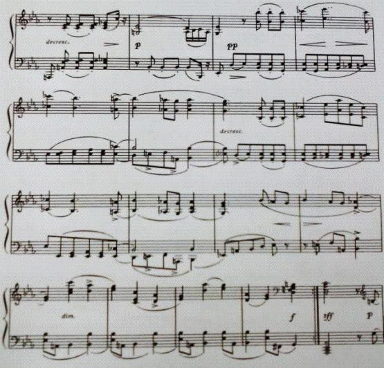репризе - на фоне непрерывного хроматического волнообразного движения