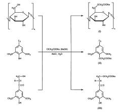 В присутствие карбонатов натрия / калия, с учетом наличия минеральной составляющей в составе биомассы и появлению определенных продуктов термолиза (таких, как например, до 6-9% мас. уксусной кислоты и ее гомологов в составе образующихся жидких продуктов термолиза целлюлозных структур) и их расходованию (о чем говорит, например, резкое снижение термодеструкции целлюлозного фрагмента до газовых продуктов (на ~ 28%), за счет вовлечения первичных продуктов термолиза во взаимодействия со структурными фрагментами биомассы) можно предположить протекание реакций карбоксиметилирования структурных фрагментов биомассы по типу реакций Вильямсона - взаимодействия гидроксильных групп основных структурных фрагментов с натриевой солью монохлоруксусной кислоты в присутствии щелочи. В процессе карбоксиметилирования образуются три типа производных [23] (рисунок 1).