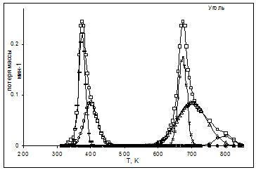 соответствующие максимальным скоростям потери массы. В данной работе потеря