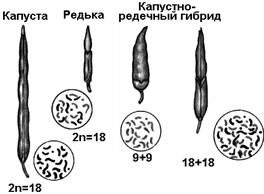 гибрид. Он скрестил редьку (2n = 18