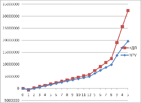 ставки дисконтирования NPV<0, то r необходимо уменьшить и так до тех пор, пока NPV = 0 или приблизится к