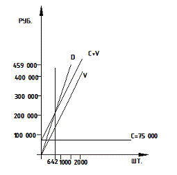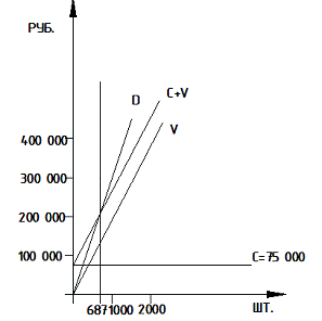 Определение точки безубыточности: N = С/0,364*Ц = 75 000/0,364*300 = 687 шт.
