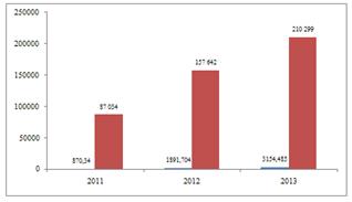 На рисунке 3.1 видно, что удельный вес розничного товарооборота Интернет-магазинов в розничном товарообороте организаций торговли РБ очень мал и составляет 1% в 2011 г., 1,2% - в 2012 и 1,5% в 2013 г.
