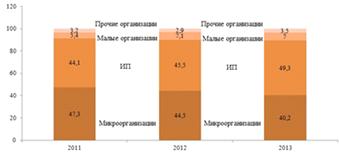 Основными субъектами хозяйствования в Интернете являются индивидуальные предприниматели и микроорганизации, в то время как на крупные организации и прочие субъекты хозяйствования приходится всего лишь 10% всех электронных магазинов страны.