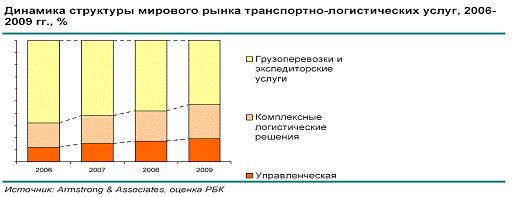 транспортно-логистических услуг, 2006-2009 гг., % представлена на рис. 2[11].