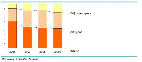 Географическая структура мирового транспортно-логистического рынка, 2006-2009гг.,% показана на рис. 6[11].