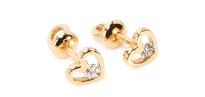 Серьги состоят из основания, оправы для камня (каста), ранта под оправу, накладок, подвесок и замка. Основание со штампованным рисунком, гладким, с местами для закрепки камней. Метод изготовления серег - монтировочный, метод закрепки камней - крапановый, по комплектности - парные, тип застежки - гвоздик. В пуссетах используется замок-гвоздик, неподвижно фиксирующий серьгу в ухе. Замок является оправой к одному камню. Замок-гвоздик в виде зажима, удерживающего фиксатор от соскальзывания с помощью специальной канавки, на который накручивается зажим. Тип серег по декоративному оформлению - сердечко.