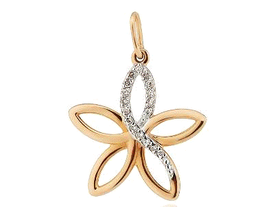 Назначение - женское украшение для шеи и платья, металл - золото 585 пробы, по конструкции подвеска со вставками из бриллиантов, вес изделия - 1,15 г, вес камней - 0,13 г., артикул - №585-190068.