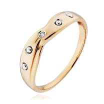 Назначение - женское украшение для рук, металл - золото 585 пробы, вес изделия - 1,79 г., по конструкции кольцо со вставками из бриллиантов, вес камней - 0,19 г. Размер кольца - 16,5 мм, артикул - №585-143234.