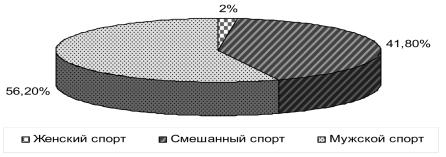 СМИ, как правило, сосредоточены на видах спорта, которые традиционно считаются «женскими»: гимнастике, плавании, синхронном плавании и фигурном катании [15: 94]. Сообщения СМИ также способствуют признанию спортсменок, участвующих в таких видах спорта, которые не требуют физической силы. Тактим образом, поддерживается гендерный стереотип, согласно которому «спорт есть по сути мужская деятельность, в которой женщины играют лишь подчиненную роль» [12: 426] (рис.2).