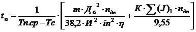 действительное ускорение груза, tп - время пуска механизма которое определяется