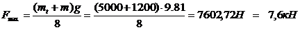 Максимальное натяжение каната определяем по