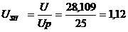 Примем значение из нормального ряда предпочтительных чисел, имеем Uзп = 1,2. Тогда U = 25 · 1,2 = 30. Проверим отклонение передаточного числа от требуемого по формуле (16)
