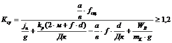 где Wк - сопротивление от трения в ходовой части крана, Wв - сопротивление от ветровой нагрузки, Wукл - сопротивление от уклона пути Wин - сопротивление от сил инерции,Wгиб - сопротивление от раскачивания груза на гибком повесе.