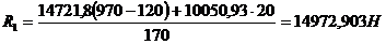 R1 = 14721,8 + 10050,93 - 14972,903 = 9799,827 Н