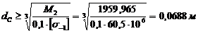 Находим диаметр оси под правой ступицей, где действуют наибольший изгибающий момент М2: