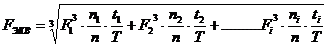 где F1, F2 …. Fi - постоянные приведенные нагрузки на подшипник при различной массе транспортируемого груза, действующие в течение времени,t2, …. ti за срок службы, при соответствии частоте вращения n1, n 2 ……ni ; Т - общий расчетный срок службы подшипника, ч;- частота вращения детали при установившемся режиме для движения, длящегося наиболее долго.