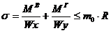 где МВ и МГ - изгибающие моменты в вертикальной и горизонтальной плоскости, Н · м;и Wу - моменты сопротивления балки при изгибе в вертикальной и горизонтальной плоскостях, м3;- коэффициент неполноты расчета;- расчетное сопротивление материала, МПа