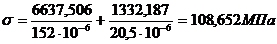 Расчетное напряжение в среднем сечении балки, выполненной из того же материала, что и продольная балка.