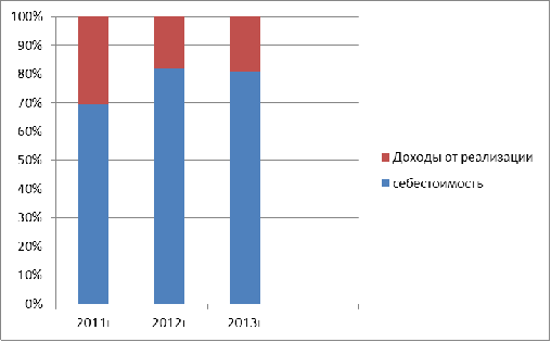Как видно, рост удельного веса себестоимости в выручке влечет за собой сокращение удельного веса доходов от реализации в выручке. Расходы от реализации выросли в 2013 году - на 98,5%. В 2013 году сумма прибыли выросла в 2,1 раза и составила 44788 млн руб, рентабельность продаж составила 6,4%.