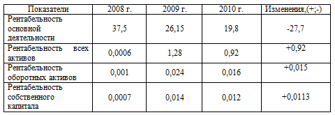 Таблица 2.5 - Показатели рентабельности ГУП ДХ "Заринское ДСУ-2" за 2008 - 2010 гг.