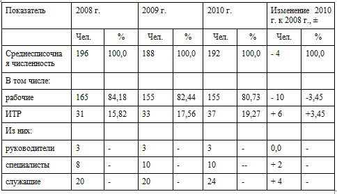 Таблица 2.6 - Состав и структура трудовых ресурсов в ГУП ДХ "Заринское ДСУ-2" в 2008-2010 гг.