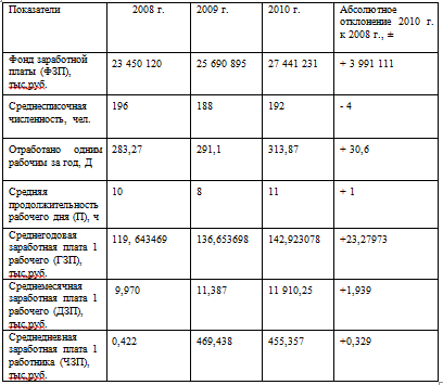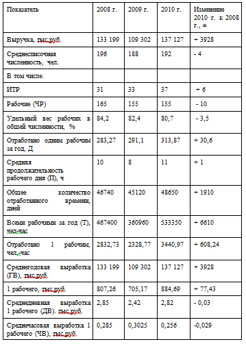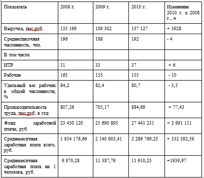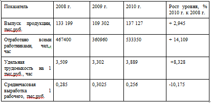 Таблица 2.8 - Анализ эффективности использования трудовых ресурсов за 2008-2010 гг.