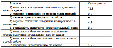 Ответы работников на предлагаемые в анкете вопросы позволили установить наиболее важные мотивационные факторы и степень их ранжирования для удовлетворения потребностей.