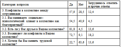 Таблица 2.17 - Результаты анкетирования по категории "конфликты в коллективе", %