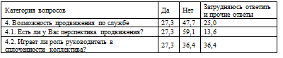 Таблица 2.18 - Результаты по категории "продвижение по службе", %