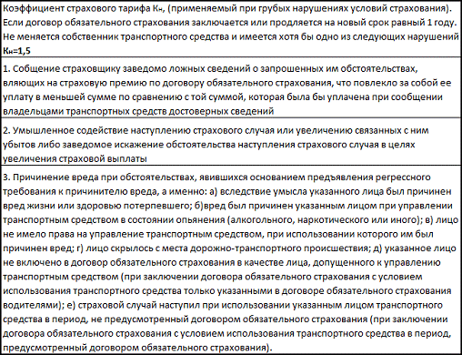 Коэффициент страхового тарифа, применяемый при грубых нарушениях: