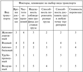 В целом на выбор способа транспортировки грузов влияет ряд